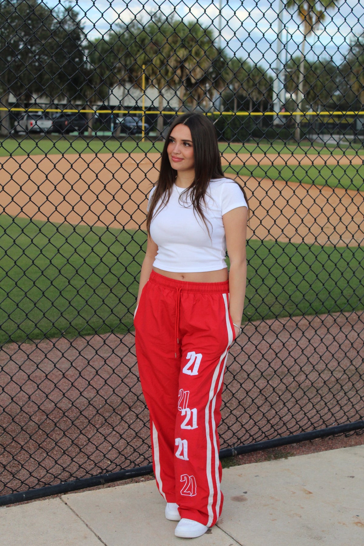 The Run It Up Track Pant is lightweight, wide-leg, and fully customizable. Adjust the waist for your ideal fit, choose your color, and finish it off with an embroidered number down the leg for a personalized touch.